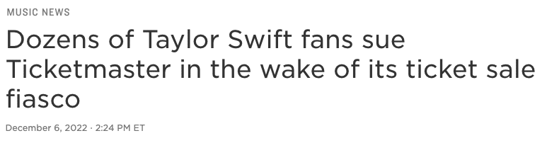 This fiasco left Taylor Swift issuing a public apology and Ticketmaster (along with its parent company Live Nation) under serious heat from the public—with fans filing lawsuits, the media scrutinizing the ticketing giant, and even The Justice Department launching an investigation into the matter.