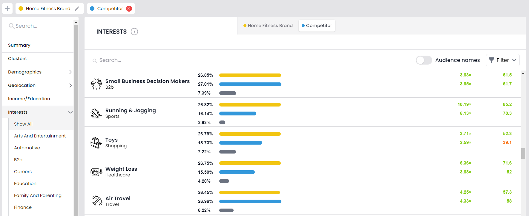 Here are just a few examples of the unique audiences you can gain insights on, or even compare within the platform: