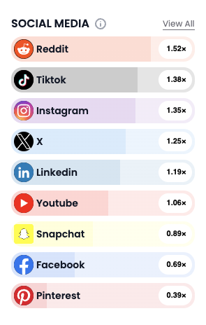 The social platforms your audience gravitates to can have a major impact on how you shape your next ad campaign. Relying on assumptions about who your audience is, and where they spend their time, can lead to missed opportunities and wasted media spend. For example, if you’re looking to get your brand in front of men with an affinity for designer menswear, Reddit, TikTok and Instagram are where they engage most. Specifically the audience is 1.52x more likely to engage on Reddit compared to the general population. They enjoy seeking intellectual discourse and niche interests on Reddit, discovering trends and entertainment on TikTok, and showcasing their lifestyle and personal brand on Instagram through fashion, sports, and music-driven content.