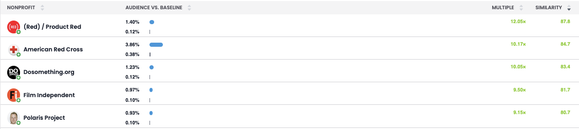 Within every report, you can filter by specific categories. For example, you can filter by categories like ‘non-profit’ if you were looking to partner with an organization that reflects this audience’s charitable interests.