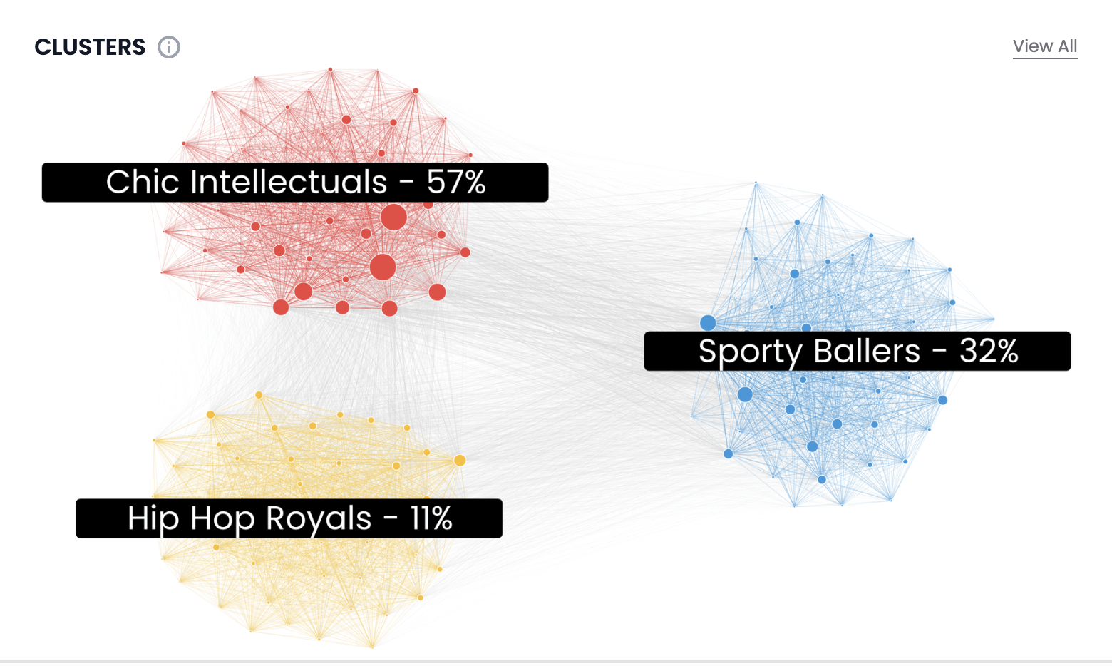 Within every insights report, an audience can include up to 8 personas. These persona clusters provide a brief overview into the various segments that make up your audience.
